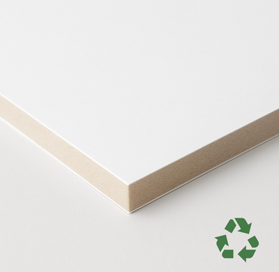 What is it: Paper-based board with a smooth surface and excellent print quality. FSC certified and ideal for indoor use.